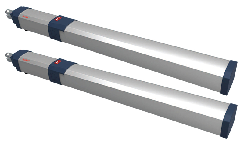 • 24V-os elektromechanikus motor szett szárnyaskapukhoz max. 200+200 kg kapusúlyig és 2+2 m kapuszárny hosszig.